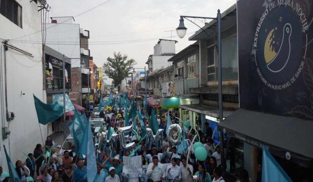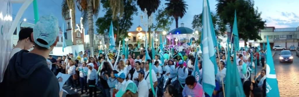 TLAXCALA, Tlax., 8 de mayo de 2024.- Con una caminata que inició en la comunidad de Texcacoac, y recorriendo el centro del municipio, mostrando musculo político, la ola turquesa se hizo presente.