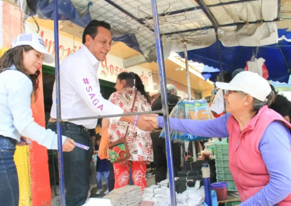TLAXCALA, Tlax., 19 de mayo de 2024.- Juan Carlos Sánchez García, mejor conocido como SAGA, candidato a la alcaldía de Apizaco por el Partido Alianza Ciudadana (PAC), realizó un recorrido por el centro de la ciudad donde sostuvo diálogos con comerciantes y locatarios. Durante la conversación, presentó sus propuestas enfocadas en revitalizar y apoyar este sector económico crucial para el Estado de Tlaxcala.