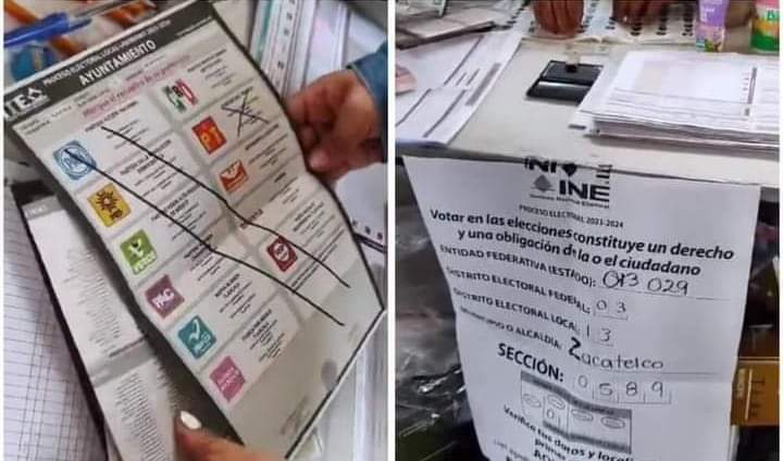 TLAXCALA, Tlax., 2 de junio de 2024.- El voto de una ciudadana que acudió a las urnas este 02 de junio fue anulado por la presidenta de la casilla en la Sección 0589, tras ser descubierta tomando fotografías a sus boletas.