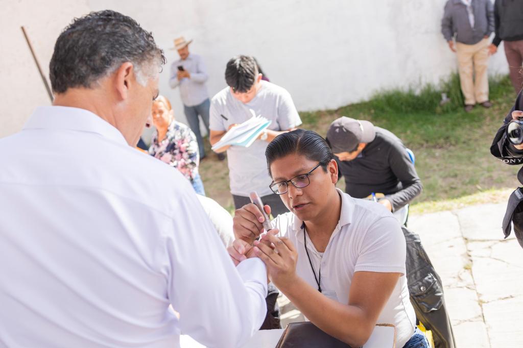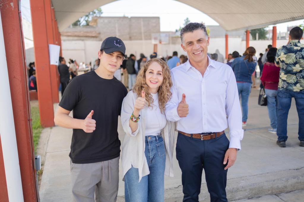 Frente a la casilla 439, ubicada en la Secundaría Lázaro Cárdenas de Ixtulco, el candidato animó a los ciudadanos a votar con libertad y responsabilidad.