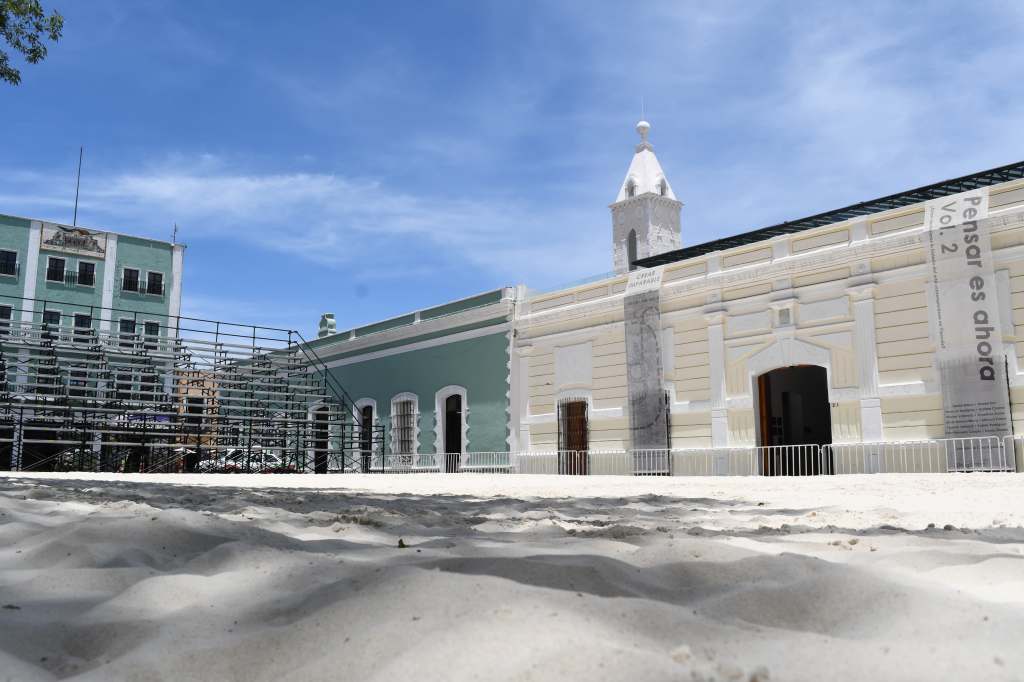 El primer cuadro de la ciudad de Tlaxcala volverá a albergar dos canchas de voleibol, una de ellas para entrenamiento frente a la Palacio de Gobierno y una más en la explanada del Museo de Arte de Tlaxcala (MAT), donde las gradas y la arena ya decoran el paisaje urbano de la ciudad.