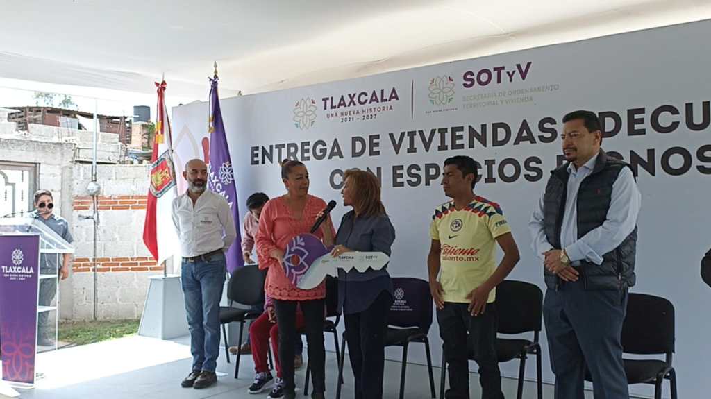 TLAXCALA, Tlax., 16 de julio de 2024.- En el municipio de Ixtacuixtla, la gobernadora Lorena Cuéllar Cisneros, entregó simbólicamente 53 acciones de vivienda, para un total de 200 beneficiarios.