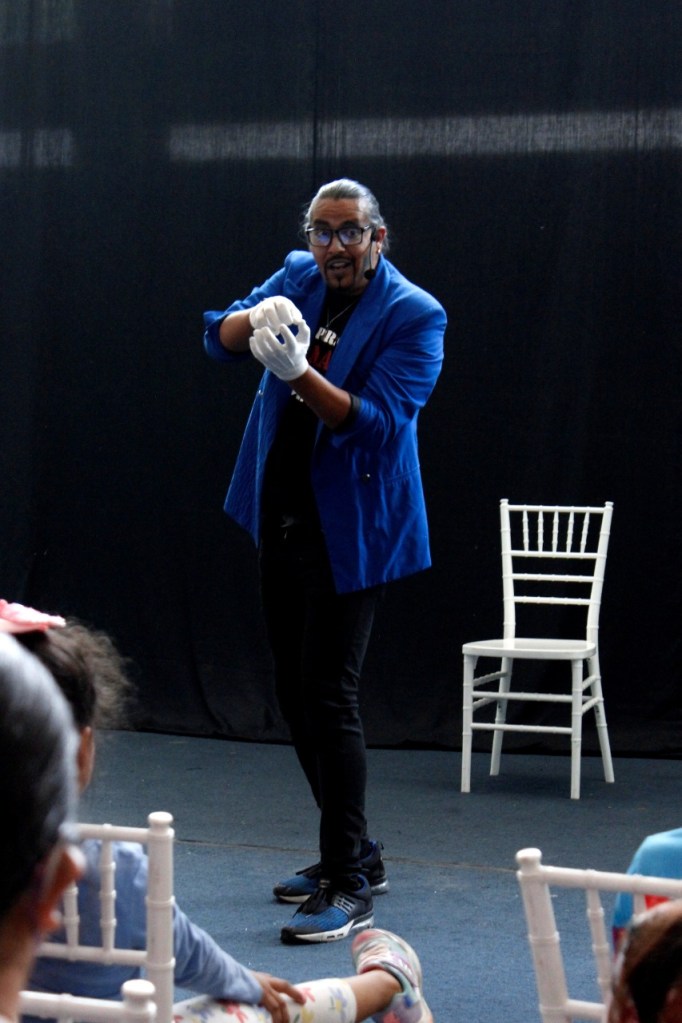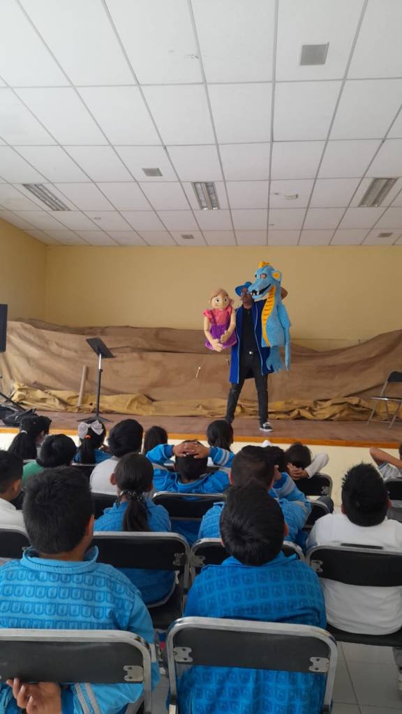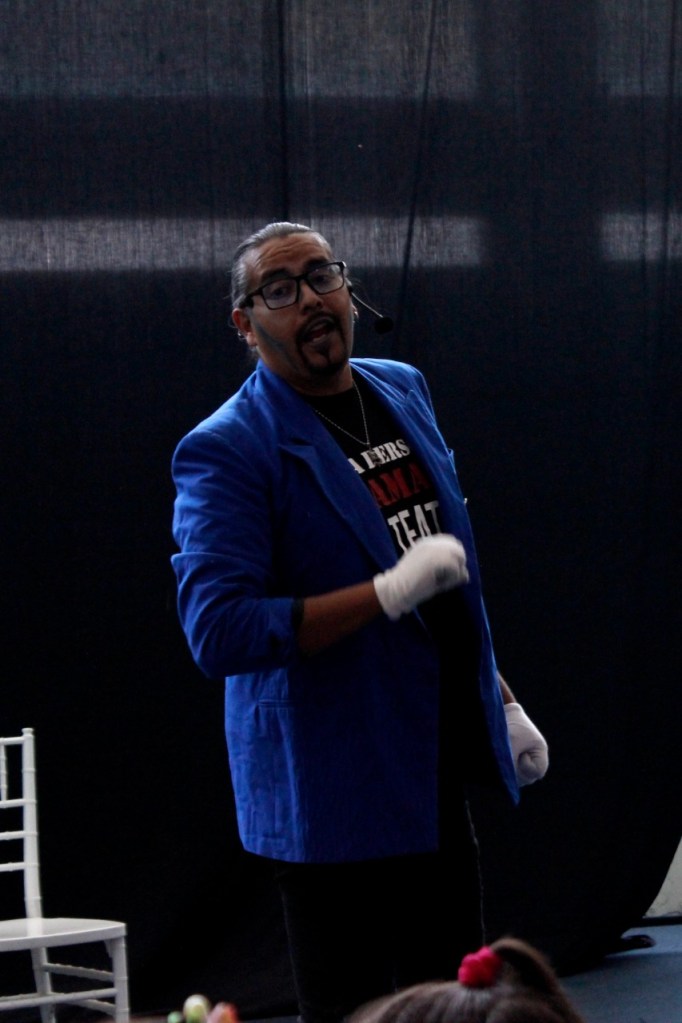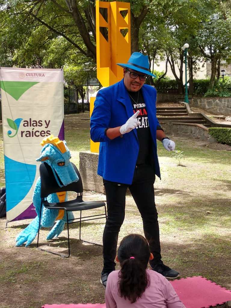 Destacó que Cuentos Azulado es un espectáculo de narración oral con canciones y cuentos, el cual se va modificando de acuerdo con las circunstancias geográficas de la entidad, la interacción con el público y ejercicios de pantomima.