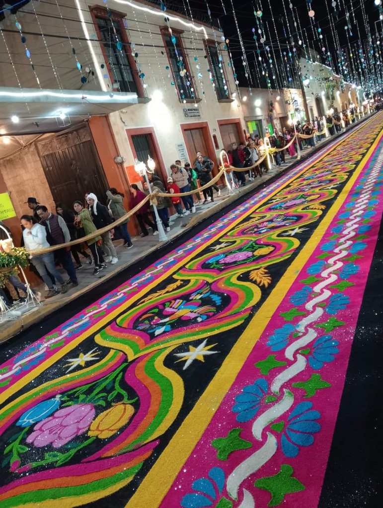 En el transcurso de la tarde y noche arribaron a Huamantla miles de tlaxcaltecas y turistas nacionales e internacionales junto a sus familias, quienes pudieron disfrutar de un recorrido por las alfombras de aserrín multicolor en las principales calles del Pueblo Mágico, así como degustar platillos típicos en diferentes comercios locales y casas de esta comunidad.