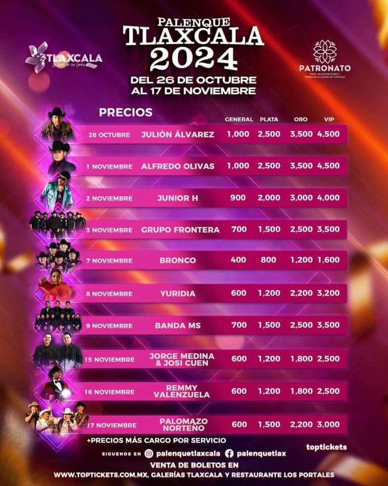 Además, los boletos tendrán un costo de 400 a 4 mil 500pesos, que cambiarán de precio dependiendo el artista y la zona del Palenque.
