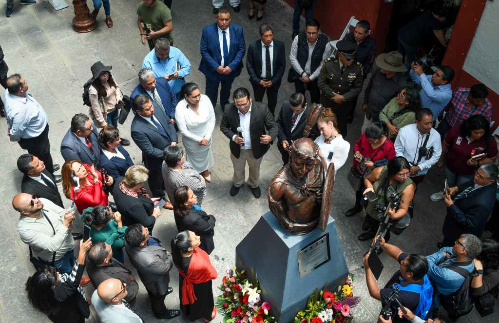 La réplica del busto de Xicohténcatl Axayacatzin, elaborada por el escultor poblano Tizoc Ramos Hernández, fue develada por la presidenta de la Mesa Directiva del Senado de la República, Ana Lilia Rivera Rivera y la alcaldesa de Tlaxcala, Maribel Pérez Arenas al interior del ayuntamiento capitalino