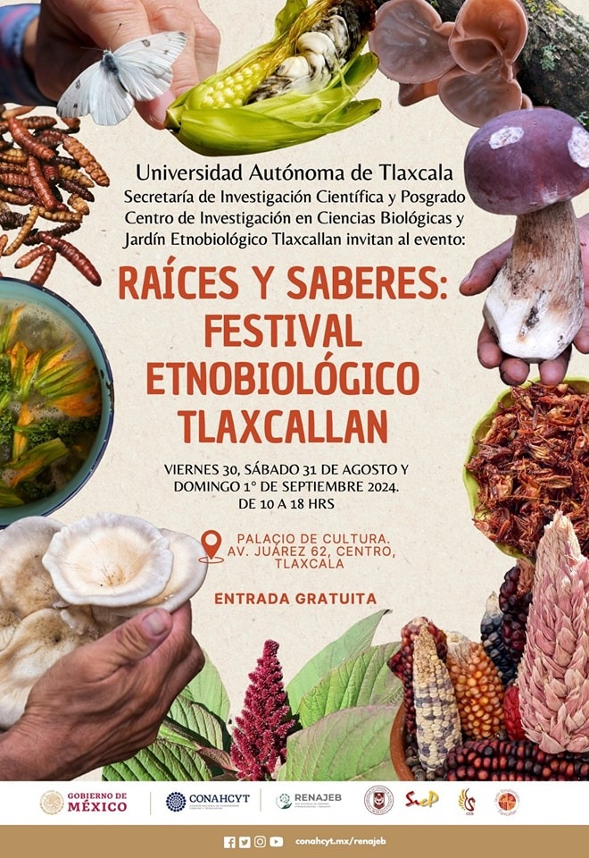 TLAXCALA, Tlax., 29 de agosto de 2024.- La Secretaría de Cultura federal, en colaboración con la Universidad Autónoma de Tlaxcala (UATx) y el Instituto Nacional de Antropología e Historia (INAH), se complace en invitar al «Festival Etnobiológico Tlaxcallan: Raíces y Saberes», que se llevará a cabo del 29 de agosto al 1 de septiembre de 2024, en el Palacio de Cultura de Tlaxcala.