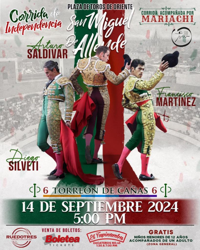 «Feria Toro reitera su compromiso con la Fiesta Brava y agradece la comprensión de la afición taurina, ofreciendo disculpas por los inconvenientes causados. Asimismo, confirma que la corrida del sábado 14 de septiembre con Arturo Saldívar, Diego Silveti y Francisco Martínez, sí se celebrará como estaba planeada, a partir de las 17:00 horas en la Plaza Oriente. Los boletos para este evento siguen disponibles a través de Boletea, en el restaurante Tupinamba y en las taquillas de la plaza.