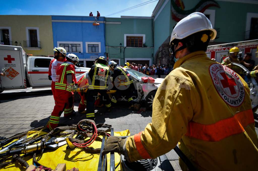 Aunado a ello, el simulacro contó con seis personas lesionadas, una de ellas extraída por un binomio canino en Palacio, dos lesionadas al interior de un vehículo y otra más rescatadas por medio de tirolesa (o rescate vertical) desde los Portales de Tlaxcala.