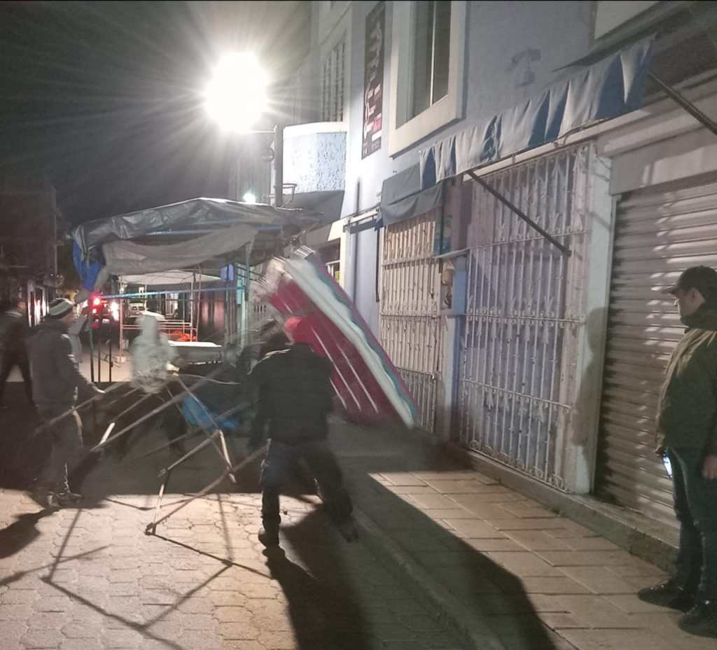 TLAXCALA, Tlax., 2 de octubre de 2024.- En atención a las peticiones de ciudadanos, organizaciones civiles, representantes de la iniciativa privada y con base en dictámenes de Protección Civil y del Bando de Policía y Gobierno, el Ayuntamiento de Tlaxcala llevó a cabo la madrugada de este miércoles, el retiro de estructuras de puestos ambulantes que estaban colocadas sobre las calles Zitlapopócatl y Guillermo Barroso, en la capital del estado, con el objetivo de regular el comercio en la ciudad.