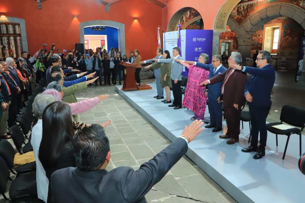 TLAXCALA, Tlax., 8 de octubre de 2024.- Este martes el Dr. Serafín Ortiz Ortiz, Rector de la Universidad Autónoma de Tlaxcala (UATx), rindió protesta como integrante de la Comisión para la “Conmemoración de los 500 años de la Fundación de Tlaxcala, 1525-2025”, en ceremonia que presidió la Lic. Lorena Cuéllar Cisneros, Gobernadora Constitucional del Estado de Tlaxcala, en el Palacio de Gobierno.