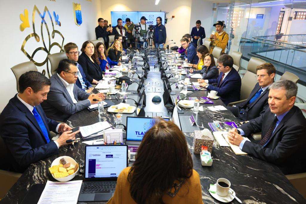 La reunión estuvo encabezada por el ministro Consejero y Jefe de la sección económica comercial de la delegación de la Unión Europea en México, Jorge Peydro Aznar, lo que refleja la importancia de este encuentro para el futuro económico de Tlaxcala.