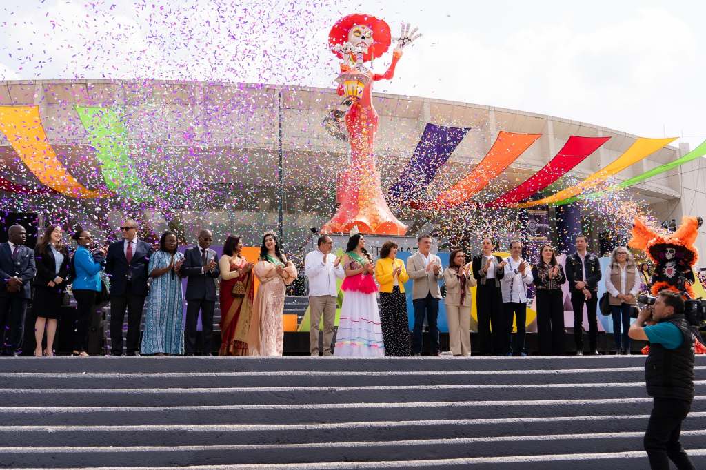La mandataria estatal, en compañía de su gabinete legal y ampliado, así como embajadores de Marruecos, Costa de Marfil, Bangladesh, Nicaragua y Nigeria, disfrutó de un flashmob con la canción “Morena de mi corazón”, e hizo un recorrido por las diferentes áreas y pabellones que conforman el Recinto Ferial.