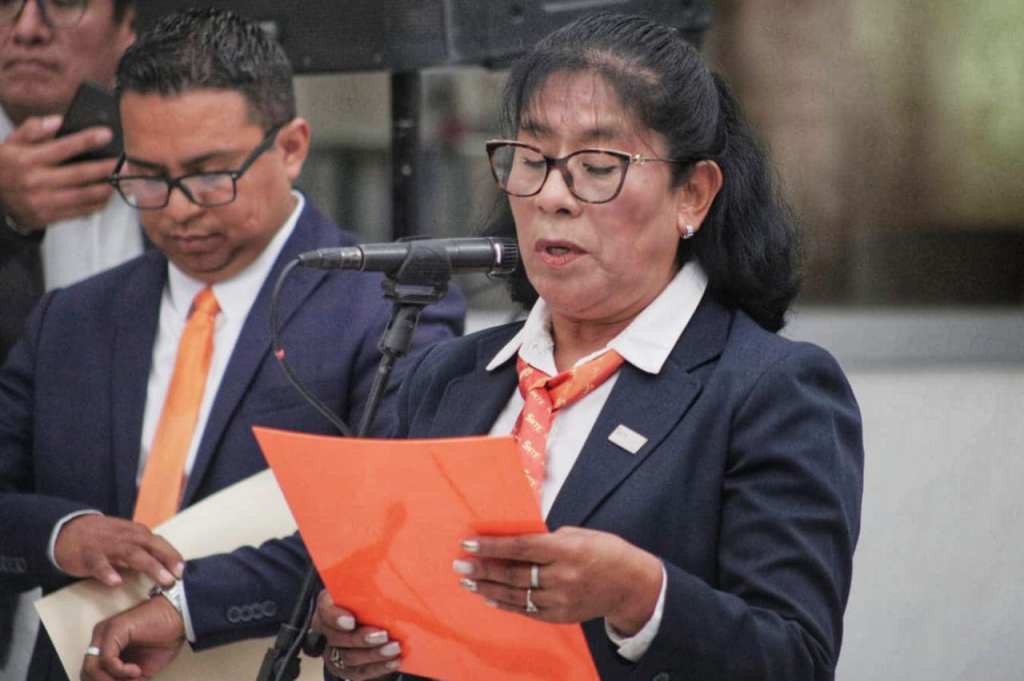 Desde las instalaciones de la Sección 55 del SNTE, en representación del secretario general a nivel nacional Alfonso Cepeda Salas, Jesús Jaime Rocha Carrillo, tomó la protesta a Tere Meneses, destacando la responsabilidad de guiar y lucar por los derechos de los trabajadores de la educación en Tlaxcala.