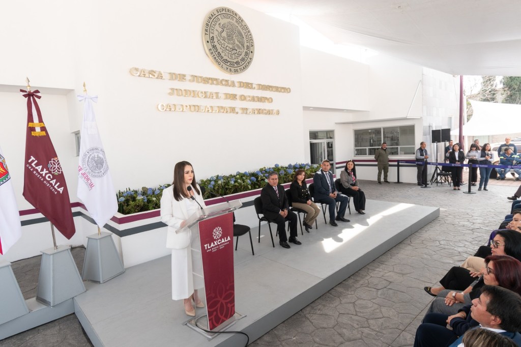 Tras 40 años de haber funcionado como Juzgado Mixto único en instalaciones inapropiadas, finalmente, este día la gobernadora del Estado, Lorena Cuéllar Cisneros y la magistrada presidenta del Poder Judicial de Tlaxcala, Anel Bañuelos Meneses, inauguraron las instalaciones de la Casa de Justicia de Ocampo, en la cual, también iniciaron funciones los nuevos juzgados, pues como parte del proceso de transformación, se creó uno nuevo y ahora se cuenta con un Juzgado especializado en materia Civil y otro en materia Familiar.
