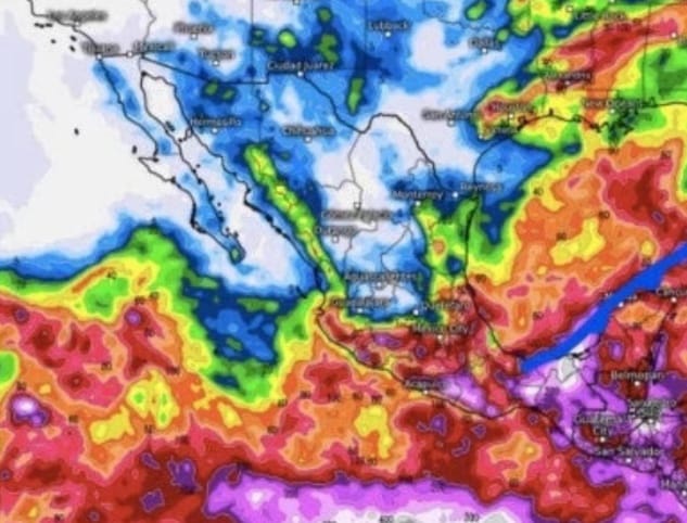 Se prevén lluvias puntuales fuertes (de 25 a 50 milímetros [mm]) en Guerrero; intervalos de chubascos (de 5 a 25 mm) en Chiapas, Colima, Jalisco, Michoacán, Oaxaca y Quintana Roo, y lluvias aisladas (de 0.1 a 5 mm) en Baja California, Tabasco y Veracruz.