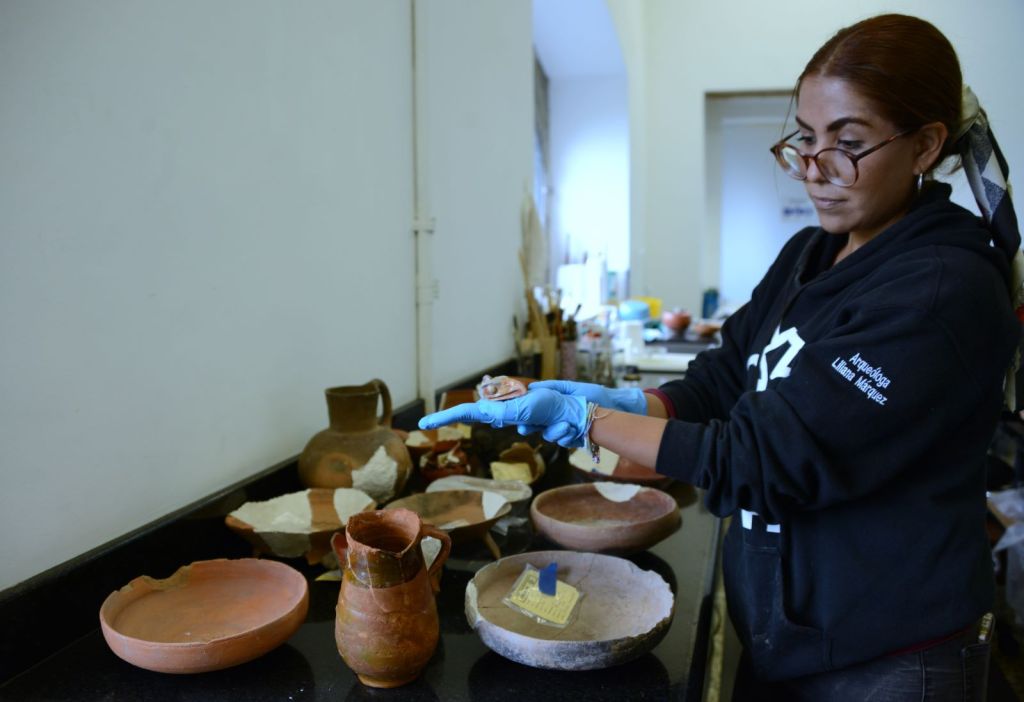 La constante ocupación del espacio también se refleja en los materiales que se intervienen en el Departamento de Restauración del MNH, donde la restauradora del proyecto de salvamento arqueológico, Norma García Huerta, recupera las formas y reintegra los colores de la colección cerámica obtenida, de la que destacan trozos de piezas de tipo ritual: sahumadores, braceros y vasijas con el símbolo solar y representaciones de personajes, y que pudieron ofrendarse a este cuerpo de agua en el periodo Posclásico Tardío.
