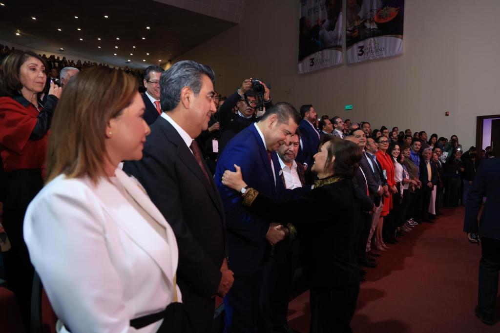 En el evento realizado en las instalaciones del Centro Cultural Universitario (CCU) de la Universidad Autónoma de Tlaxcala (UATx), la titular del Ejecutivo local fue arropada por exgobernadores, funcionarios, exfuncionarios, diputados federales y locales, alcaldes, así como líderes empresariales, sociales y sindicales, además de rectores, entre otros representantes de la academia.