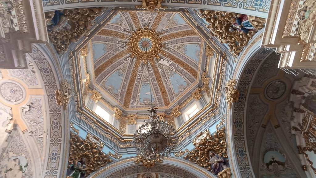 Con estos trabajos, se busca rescatar la cúpula, el presbiterio y los transeptos, mismos que por la humedad se ha desprendido la pintura, decorados de argamasa y laminilla de oro que datan de los años 50s, fecha en que refirió el padre Ranulfo Rojas Bretón, se dio este revestimiento a la Parroquia en la parte superior.
