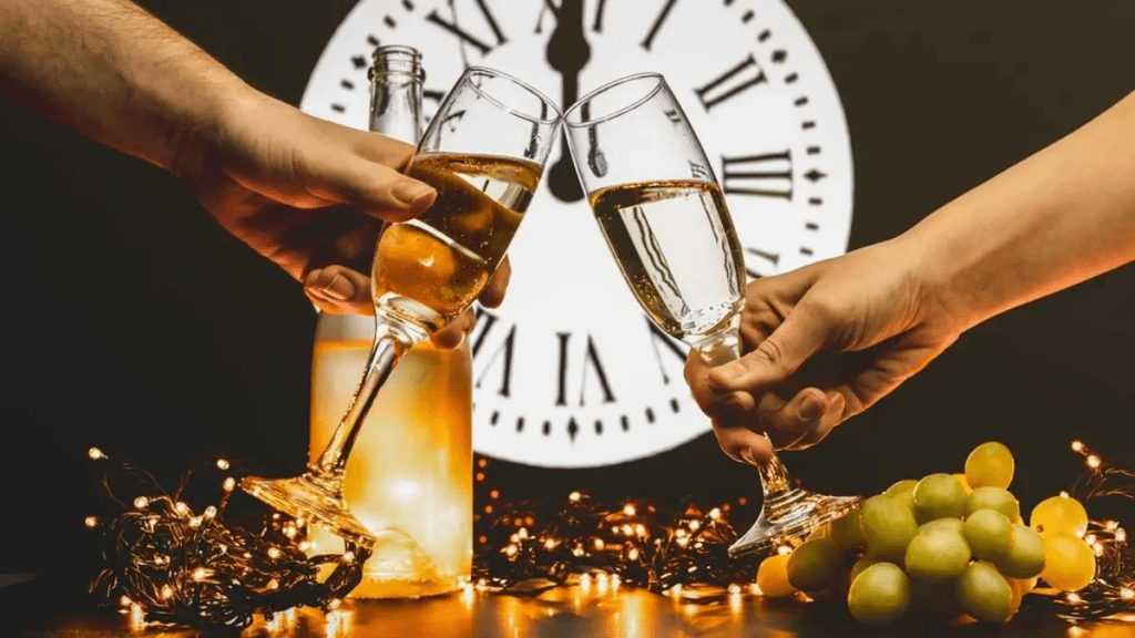 LAS 12 UVAS: Estas se comen precisamente cuando el reloj está dando las doce campanadas que marcan el termino del año e inicio del año nuevo.
