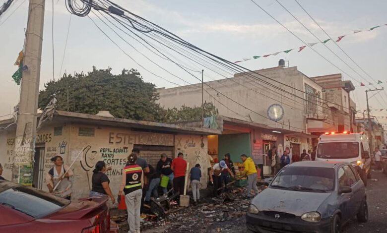 TLAXCALA, Tlax., 31 de diciembre de 2024.- Este martes ardió en llamas un puesto de pirotecnia presuntamente clandestino, ubicado en pleno centro del municipio de Tenancingo.