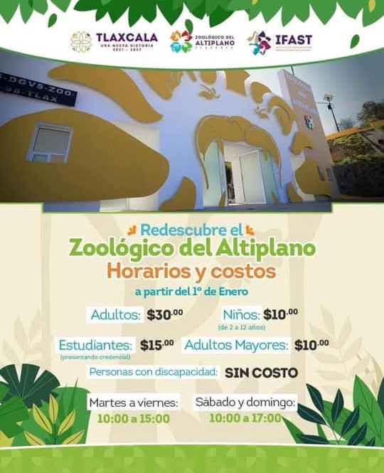 TLAXCALA, Tlax., 1 de enero de 2025.- A partir de este 1 de enero el costo de acceso al Zoológico del Altiplano paso de 10 a 30 pesos para adultos y de 5 a 10 pesos para niños.