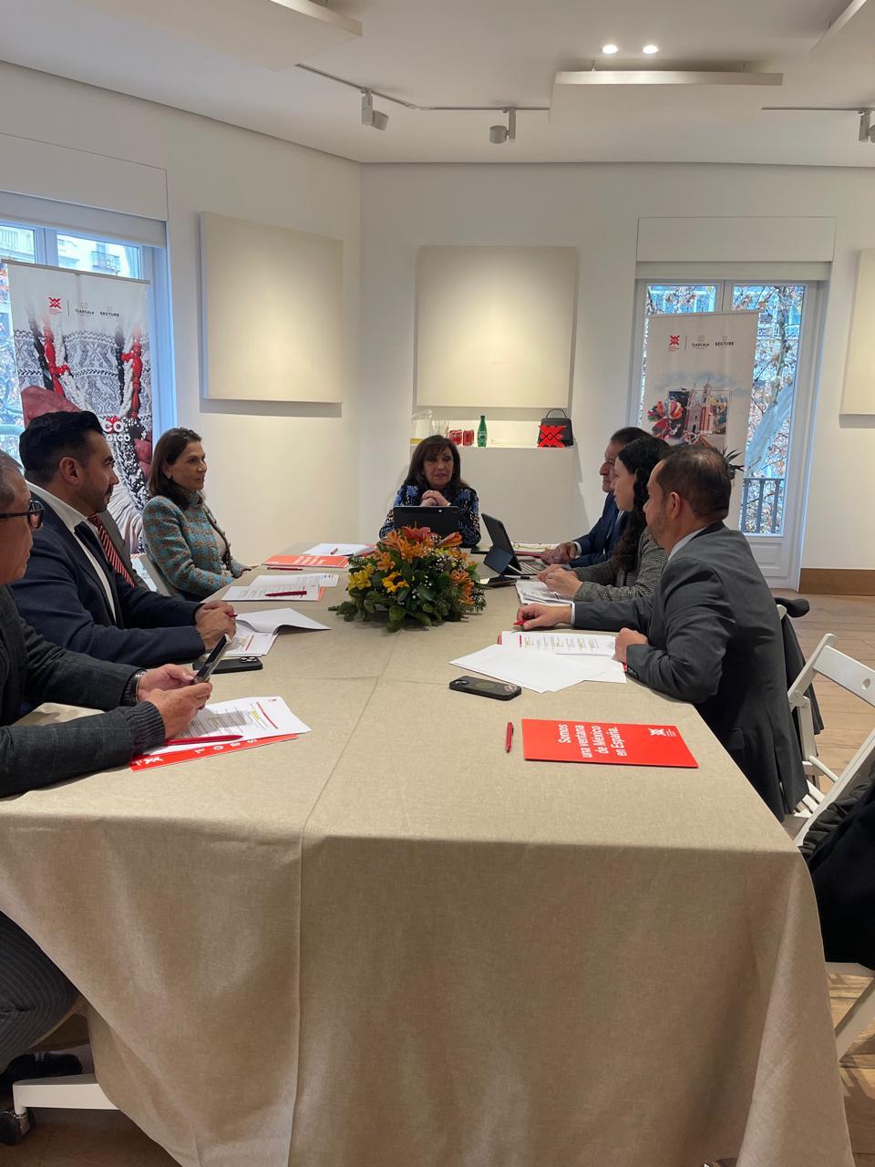 La mandataria estatal Lorena Cuéllar sostuvo encuentros de trabajo con Ángela de Miguel, presidenta de la Asociación Empresarial México-España; con el CEO Xavi Cortés, director de SYV Corporativo España, y con don Ignacio Sierra, director General del Corporativo de Grupo Tendam, perteneciente al sector textil.
