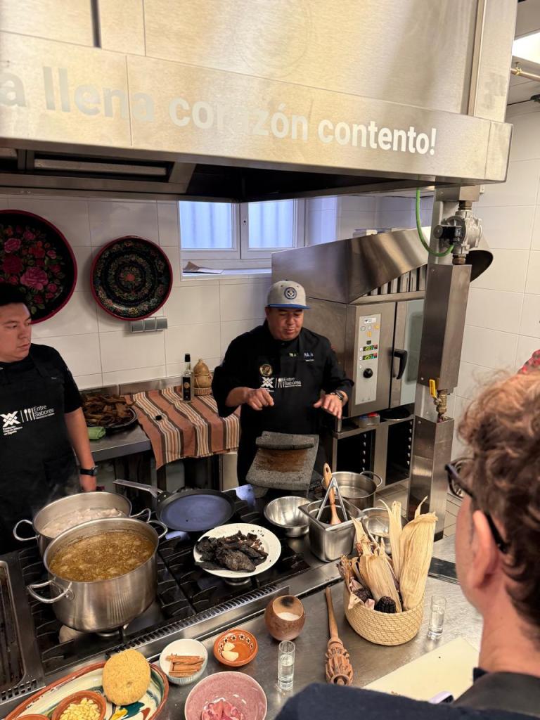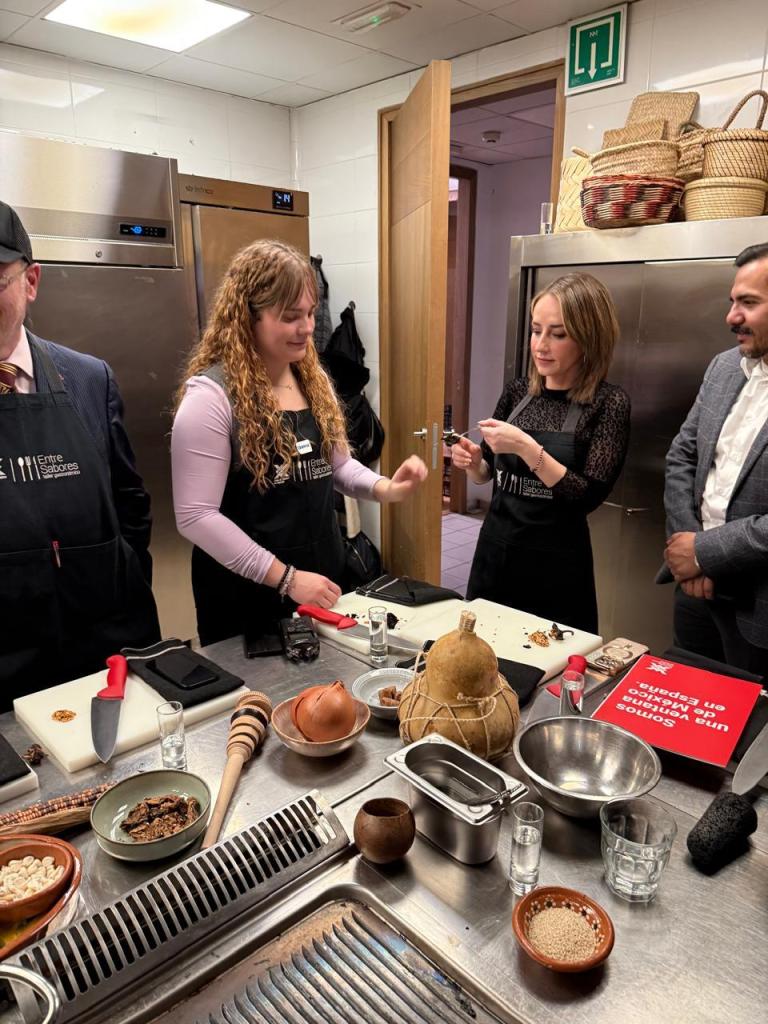La secretaria de Cultura de Tlaxcala, Karen Villeda, destacó que «este taller no solo es una ventana para mostrar la riqueza de nuestra gastronomía, sino también una oportunidad para fortalecer los lazos culturales entre Tlaxcala y España. Nuestros moles son una expresión de nuestra identidad y compartirlos en este prestigioso espacio es motivo de orgullo».