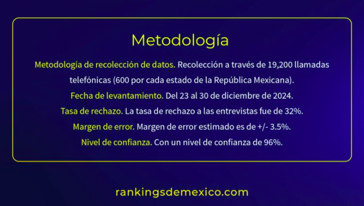 Esta evaluación se basa en el desempeño percibido por sus respectivos ciudadanos en áreas como seguridad, fomento al empleo, salud, obra pública, capacidad, finanzas estatales y acciones contra la pobreza.