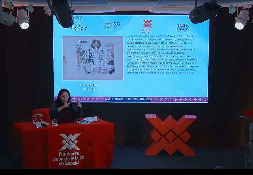 TLAXCALA, Tlax., 22 de enero de 2025.-Como parte de la Semana de Tlaxcala en Casa de México, en España, Karen Villeda, titular de la Secretaría de Cultura del estado, encabezó un ciclo de conferencias para exponer la herencia histórica y cultural de la entidad.