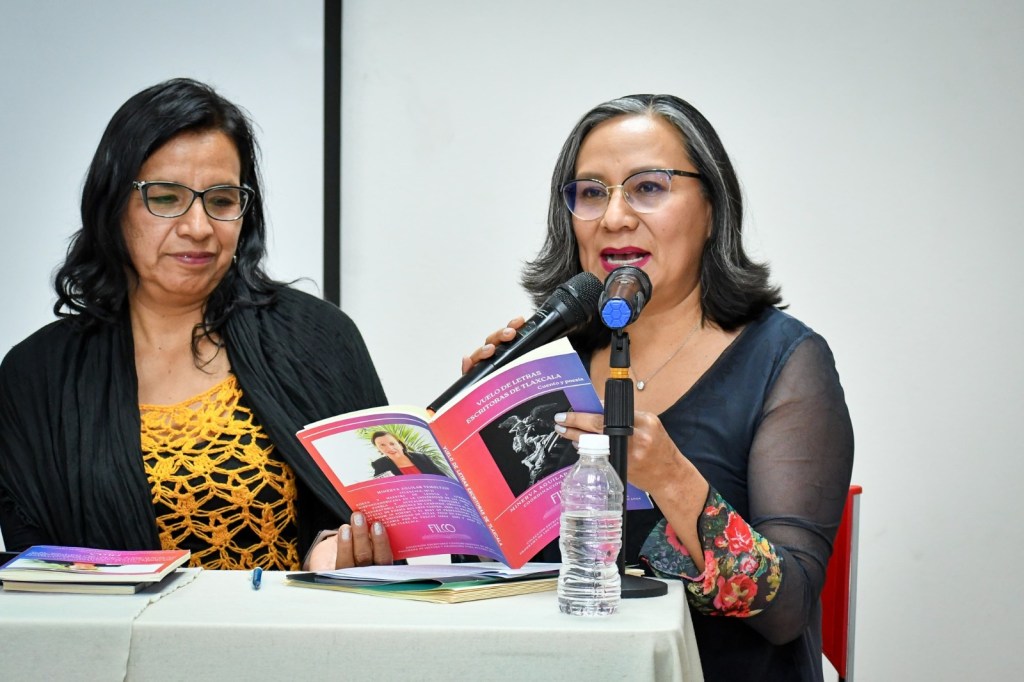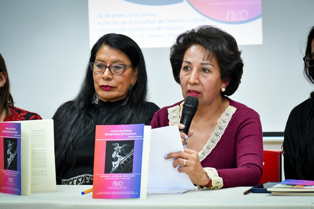 TLAXCALA, Tlax., 03 de febrero de 2025.- La Licenciatura en Lengua y Literatura Hispanoamericana de la Facultad de Filosofía y Letras de la Universidad Autónoma de Tlaxcala (UATx) presentó el libro Vuelo de letras: Escritoras de Tlaxcala. Cuento y poesía, de la colección 𝐄𝐬𝐜𝐫𝐢𝐭𝐨𝐫𝐞𝐬 𝐂𝐨𝐧𝐭𝐞𝐦𝐩𝐨𝐫𝐚́𝐧𝐞𝐨𝐬 𝐝𝐞 𝐌𝐞́𝐱𝐢𝐜𝐨, un proyecto autosustentable del Programa de Lectura y Promoción para Autores Mexicanos, realizado por la Feria Internacional del Libro en Coyoacán (FILCO).