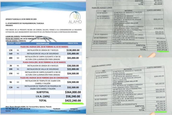 TLAXCALA, Tlax., 15 de marzo de 2025.- Un ciudadano de Yauhquemehcan denuncio publicamente una presunta alteración en la cotización de los servicios contratados por el Ayuntamiento para el Carnaval, lo que habría generado una diferencia de más de 300 mil pesos en el pago final.