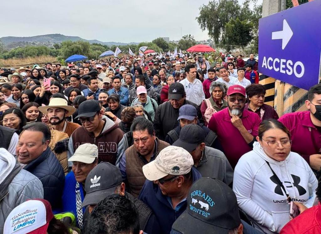 TLAXCALA, Tlax., 22 de marzo de 2025.- Cientos de tlaxcaltecas provenientes de diversas partes del estado, arribaron a la planta de tratamiento de aguas residuales de San Hipólito Chimalpa, en la capital del estado para dar la bienvenida a la presidenta de México, Claudia Sheinbaum Pardo.