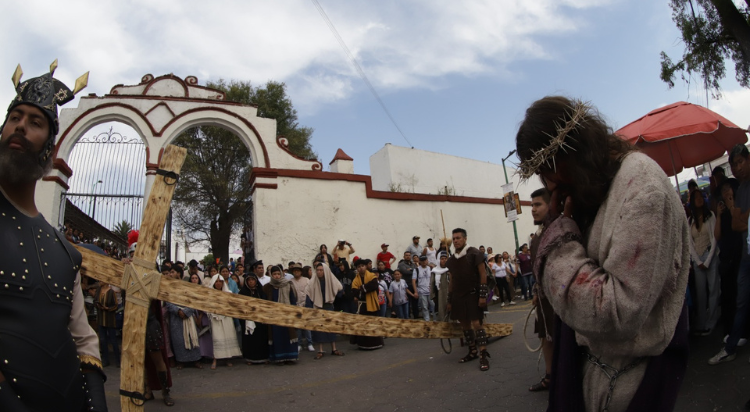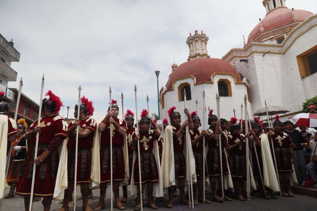 Cientos de personas locales y visitantes de otros municipios se reunieron en las principales calles del municipio para acompañar a los diversos grupos de representación del Viacrucis y de alabarderos en conmemoración por la Pasión y Muerte de Jesucristo.