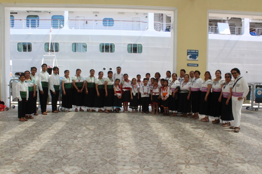 Los coros tlaxcaltecas compuestos por grupos corales en luenguas indígenas otomí y náhuatl, ofrecieron una destacada presentación en la Terminal Portuaria de Puerto Vallarta.