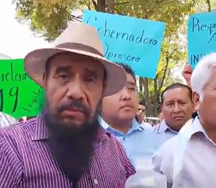 Reunida está comitiva en el zócalo capitalino, buscó accesar al Palacio de Gobierno, para una reunión con el secretario de Gobierno, Luis Antonio Ramírez Hernández, dónde buscarían entregar su pliego petitorio.