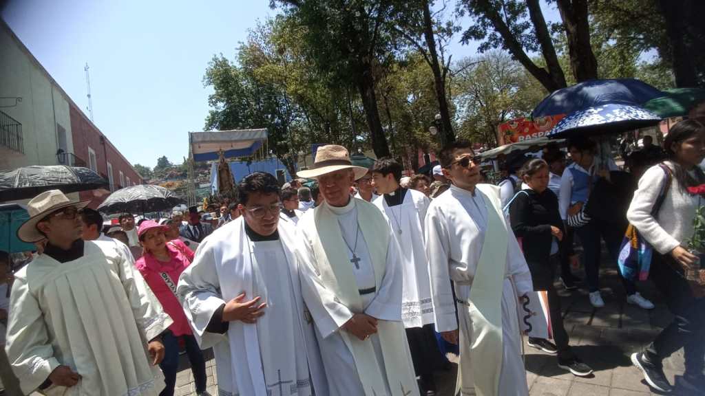 TLAXCALA, Tlax., 19 de mayo de 2025.- Ser constructores e instrumentos de la paz, fue el mensaje del obispo de Tlaxcala, Julio César Salcedo Aquino, a las autoridades de Tlaxcala durante la procesión de la Bajada de la Virgen de Ocotlán.