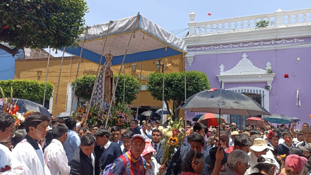 TLAXCALA, Tlax., 19 de mayo de 2025.- La Bajada de la Virgen de Ocotlán a las calles de la capital de Tlaxcala, es un acto que rememora el peregrinar de la Virgen María desde Nazareth hasta Judea, por eso desde 1641 que se realiza esta procesión, es para dar su mirada a la ciudad y llevar el mensaje de esperanza y fe al pueblo tlaxcalteca.