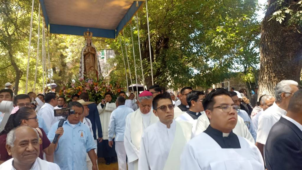 Así, el obispo de Tlaxcala, Julio César Salcedo Aquino, resaltó que María es peregrina y por eso invita a todos a serlo y vivir en la luz, dolor y gloria.
