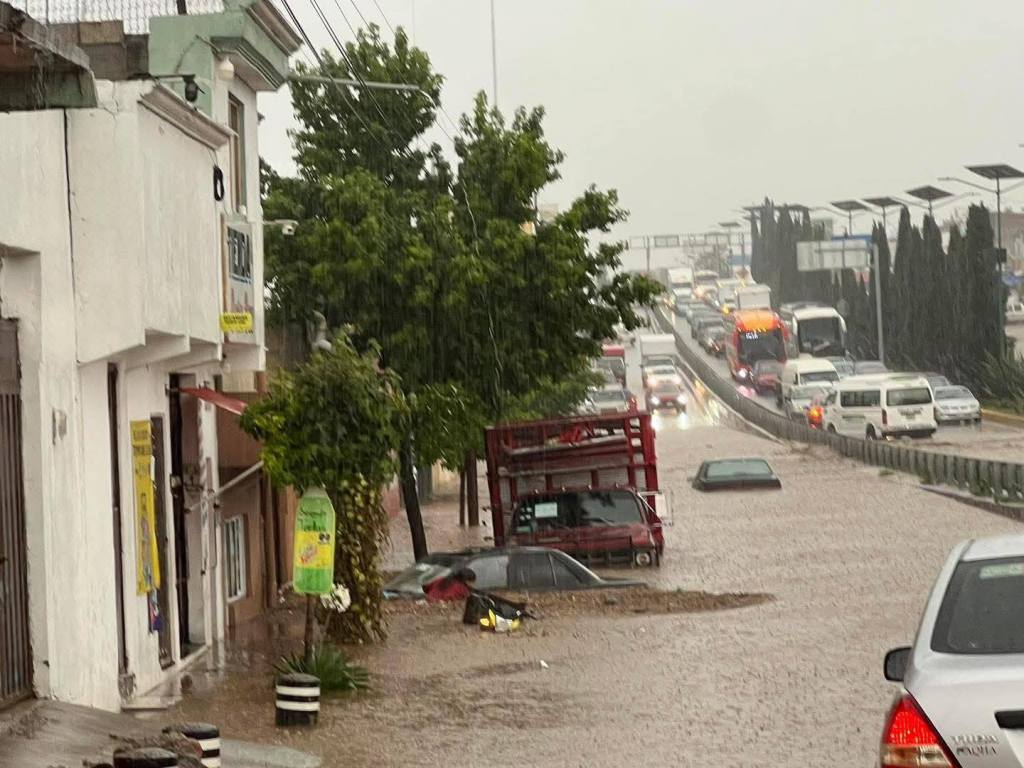 En la capital del estado, Tlaxcala, se registró la crecida de agua en calles del centro histórico y calles del perímetro que registran importante afluencia de descarga de agua que baja de diversos puntos ocasionando atascos de vehículos.