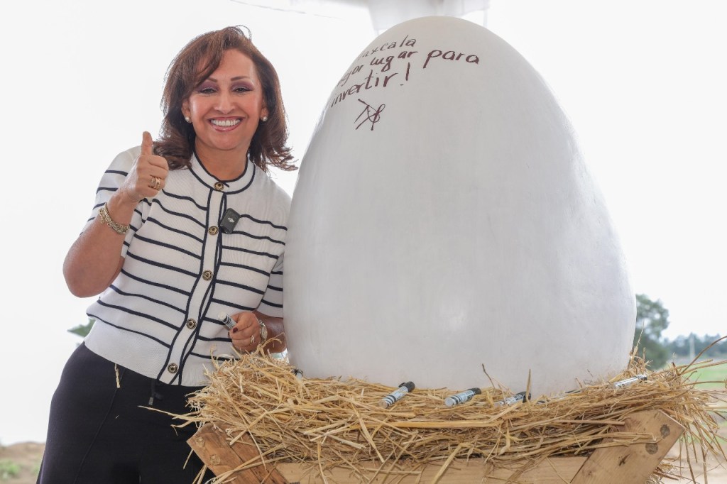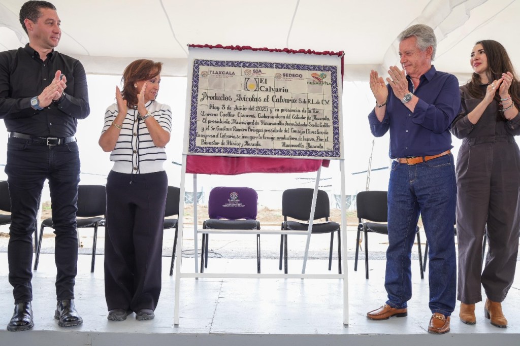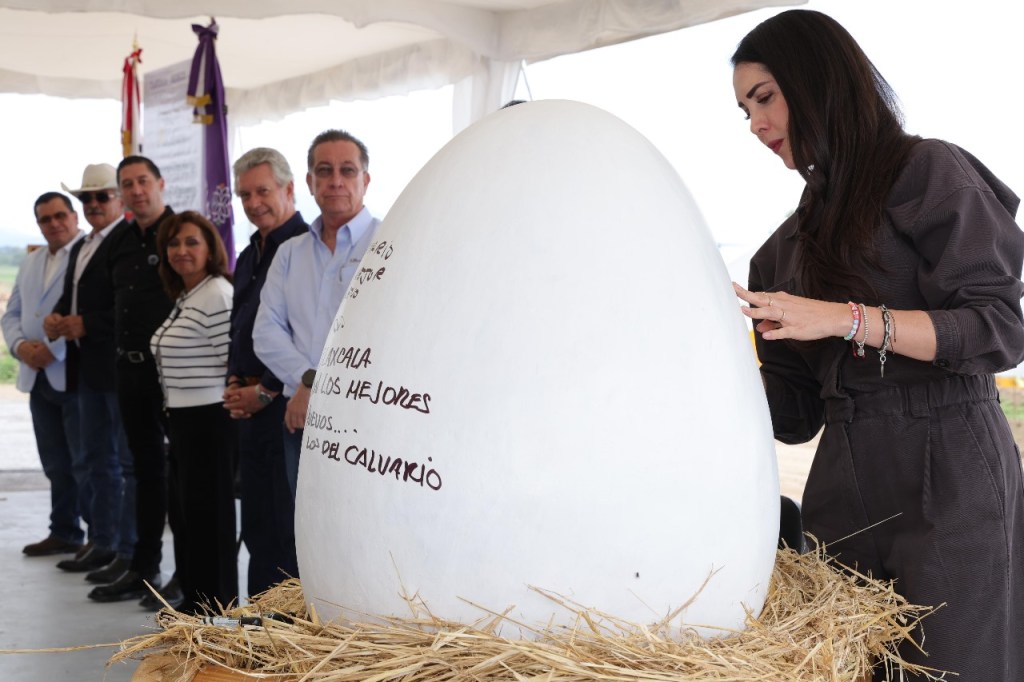 La titular del Ejecutivo develó la placa y firmó la réplica de un huevo para señalar de manera simbólica el inicio de la producción de este alimento por la empresa, acompañada por el alcalde de Huamantla, Salvador Santos Cedillo; la presidenta de la comisión de Desarrollo Económico del Congreso local, Aurora Villeda Temoltzin; el titular de la oficina de representación de la Secretaría de Agricultura y Desarrollo Rural (Sader) del Gobierno de México en Tlaxcala, Jorge Caballero Román, así como Jaime Romero, gerente general de productos avícolas y ejecutivos de la empresa.
