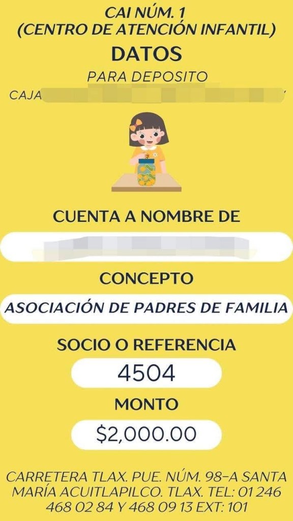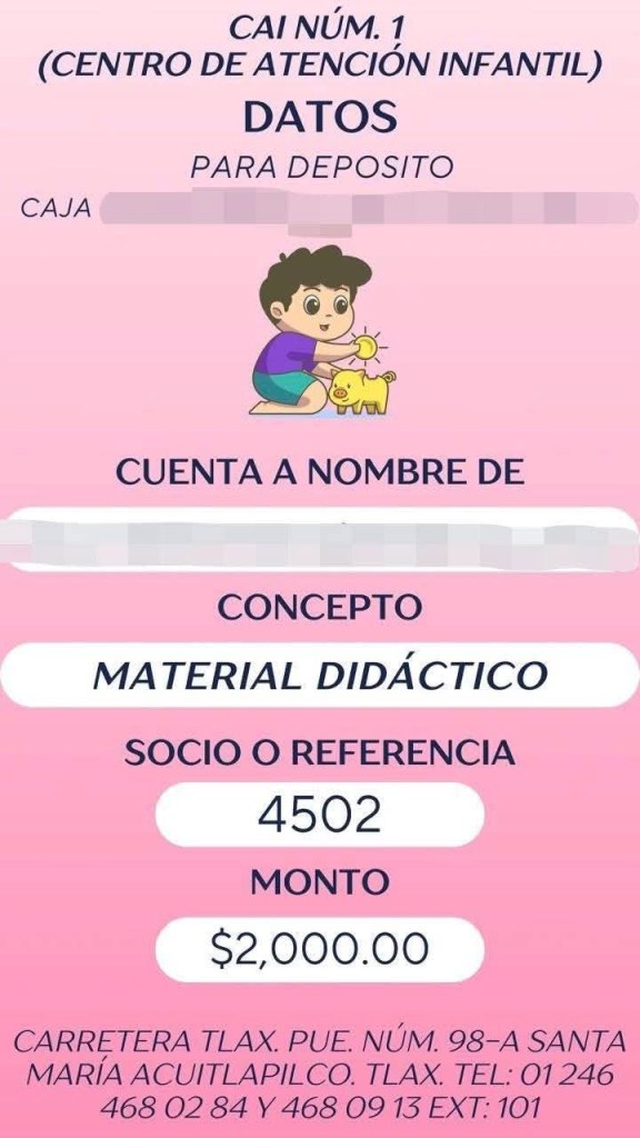 TLAXCALA, Tlax., 23 de julio de 2025.- Costo de hasta 4 mil pesos pagarán los padres de familia por las inscripciones para el nuevo ciclo escolar 2025-2026 en el Centro de Atención Infantil (CAI) número 01, ubicado en la comunidad de Acuitlapilco, a ello se sumarán los gastos escolares, uniforme y calzado.