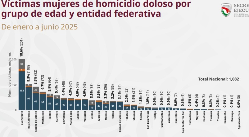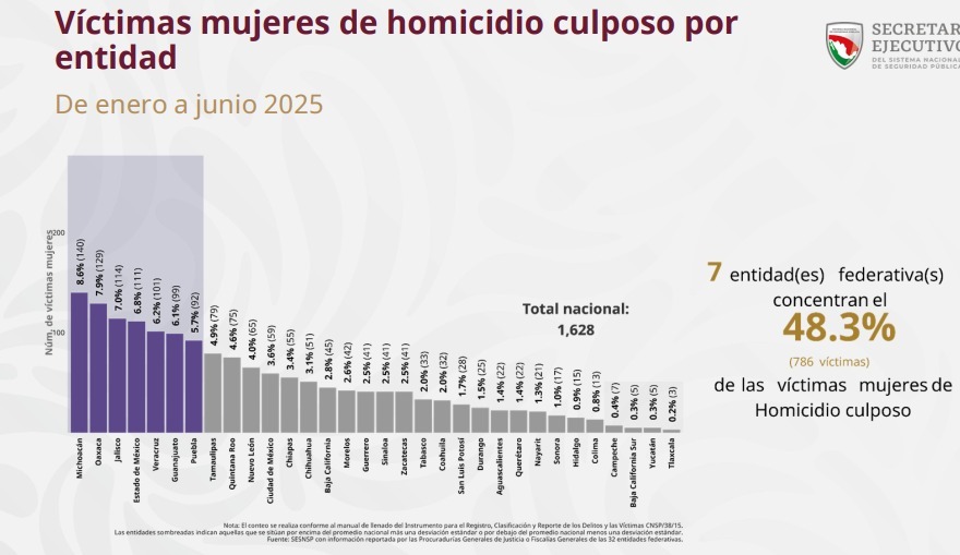 De acuerdo a estos datos oficiales, se evidencia que siete entidades federativas concentran el 51.8 por ciento de los homicidios dolosos registrados en el país durante el primer semestre de 2025.