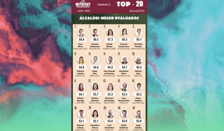 TLAXCALA, Tlax., 30 de julio de 2025.- Mientras algunos alcaldes de capitales estatales mantienen altos niveles de aprobación y gobiernan con respaldo ciudadano, el presidente municipal de Tlaxcala, Alfonso Sánchez García, figura en el fondo de la tabla nacional, de acuerdo con el más reciente ranking de Consulta Mitofsky del mes de junio.