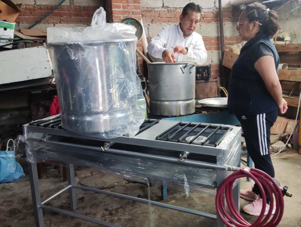 A través de la Dirección de Desarrollo y Fomento Económico, el gobierno municipal hizo entrega de una parrilla de tres quemadores, una manguera de 3.5 metros y una vaporera industrial, herramientas que permitirán a las beneficiarias incrementar su capacidad productiva y mejorar la calidad de sus productos.