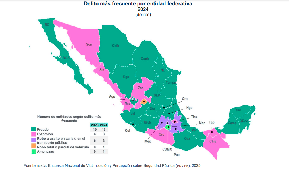 Con ello, cada hogar en promedio tuvo que destinar 5 mil 827 pesos de su presupuesto particular para protegerse de la delincuencia, esto detalla el INEGI en este reporte de la Encuesta Nacional de Victimización y Percepción sobre Seguridad Pública (ENVIPE) de septiembre de 2025, presentada este viernes.