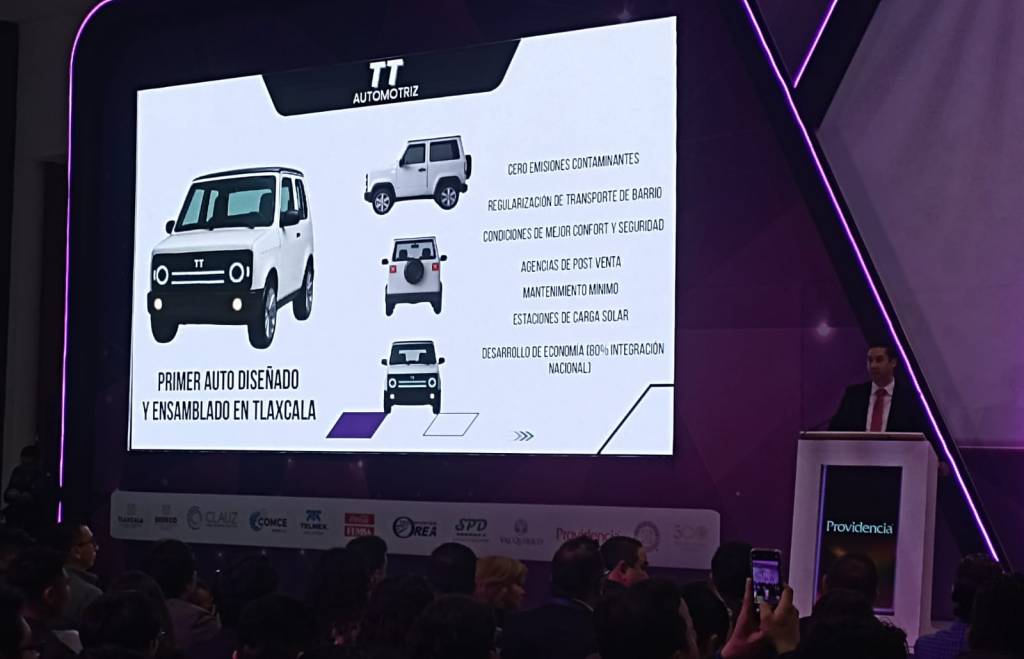 El modelo TT (Totalmente Tlaxcalteca) es un auto con cero emisiones contaminantes, tiene regulación de transporte de barrio, condiciones de mejor confort y seguridad, tendrá un mantenimiento mínimo, cuenta con estaciones de carga solar, desarrollo de economía (80% integración nacional) y con agencias de post venta.