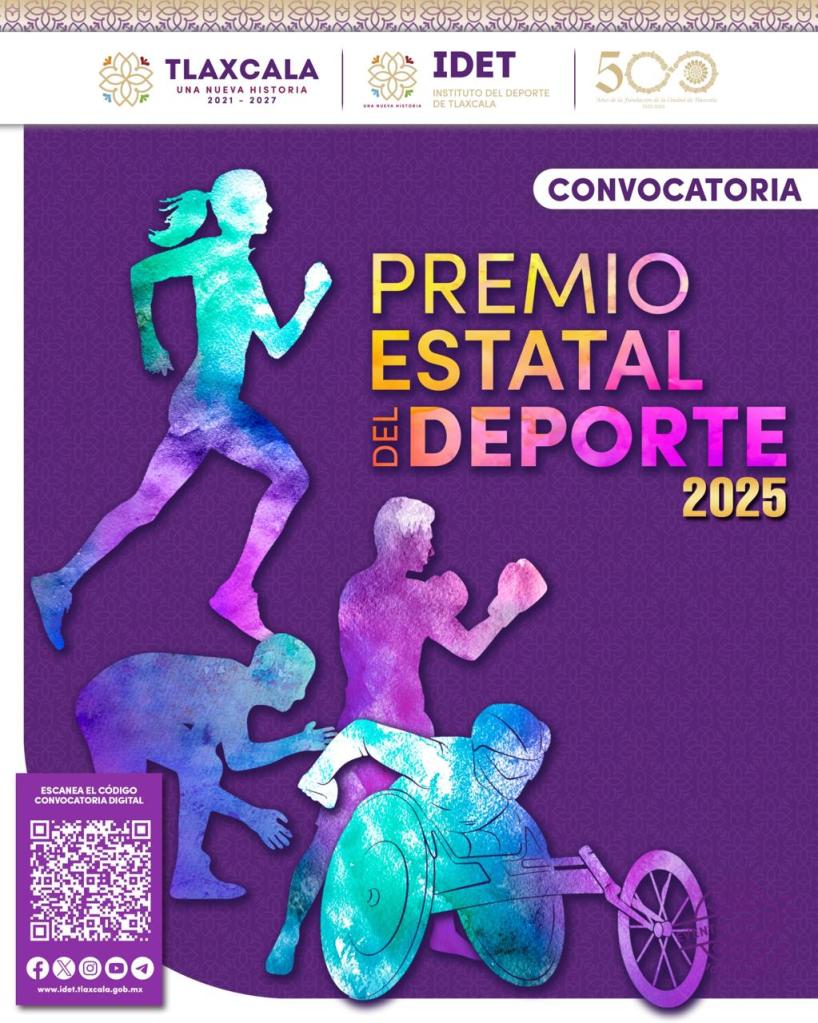 TLAXCALA, Tlax., 28 de septiembre de 2025.- El Instituto del Deporte de Tlaxcala (IDET), en coordinación con la Comisión Nacional de Cultura Física y Deporte (Conade), lanzó la convocatoria para el Premio Estatal del Deporte 2025, con el propósito de reconocer a atletas, entrenadores y promotores que hayan destacado en el ámbito amateur.