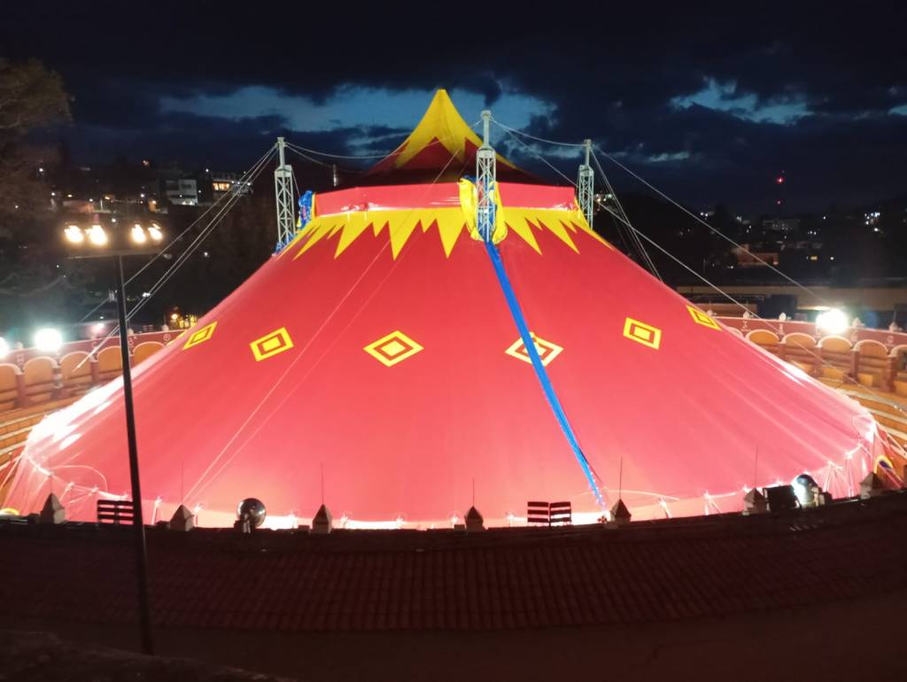 Empero, al inicio de la instalación de esta carpa circense circularon imágenes donde se habían amarrado las estructuras a las columnas de la Plaza de toros y los burladeros, sin embargo, posteriormente de circular estas fotografías se quitaron estos tensores y colocaron en el piso de la plaza para evitar daños al patrimonio,