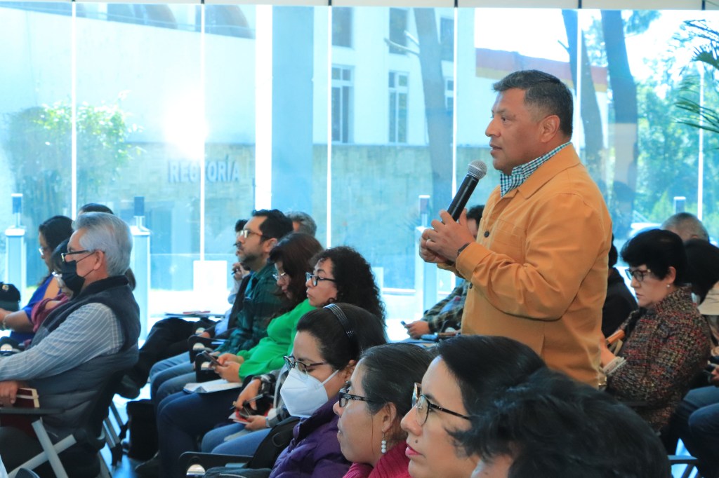 Ante especialistas de los centros de investigación y de cuerpos académicos, estructura directiva de la Institución y de las facultades, en el Auditorio Semifijo de Educación Inicial de la Torre de Rectoría, el Doctor Ortiz propició un diálogo con los académicos para conocer sus puntos de vista con respecto a los trabajos de futuro que buscan apuntalar la educación continua con diversos sectores de la sociedad.